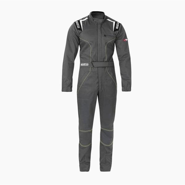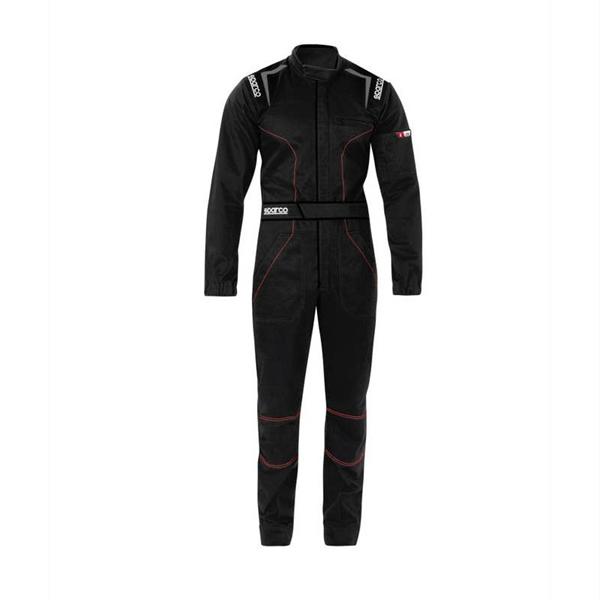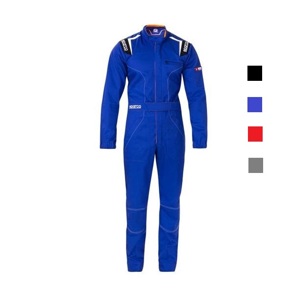 Ühevärviline Sparco MS-4 mehaaniku kombinesoon sisekardisõiduks või üldiseks mehaanikaks. Stiililt sarnane professionaalsete sõitjate kombinesoonidega, integreeritud õlapaelte, küljetaskute ja motospordist inspireeritud vööaasaga.